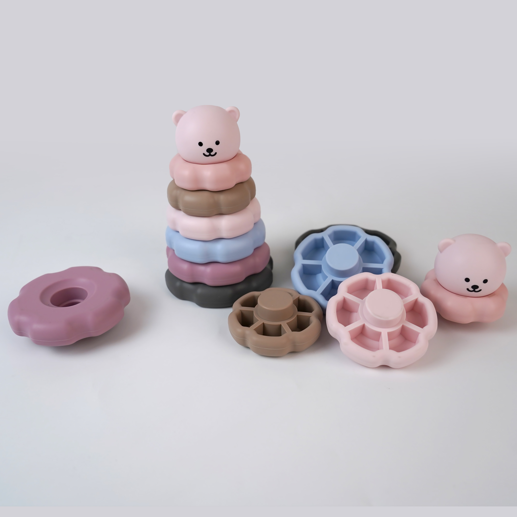 3-6歲寶寶益智硅膠疊疊樂(lè)六瓣花早教益智玩具硅膠積木