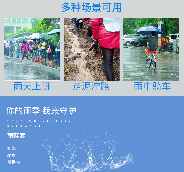 硅膠防水鞋套是為雨天出行設計的便利生活用品。采用硅膠材質,尺碼可選。有效隔絕雨水和地面積水打濕鞋子。近年來越來越受到消費者歡迎。